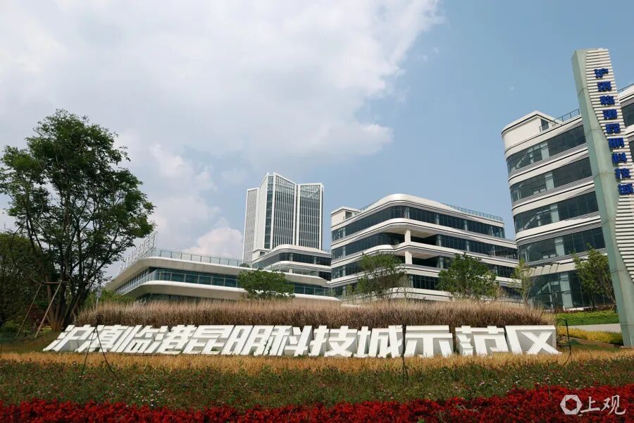 走进沪滇临港昆明科技城,大面积的玻璃幕墙、规整的几何形态、现代主义的建筑风格,让人不免有些恍惚,似乎一步跨越几千公里,来到了上海的漕河泾开发区、临港松江科技城。