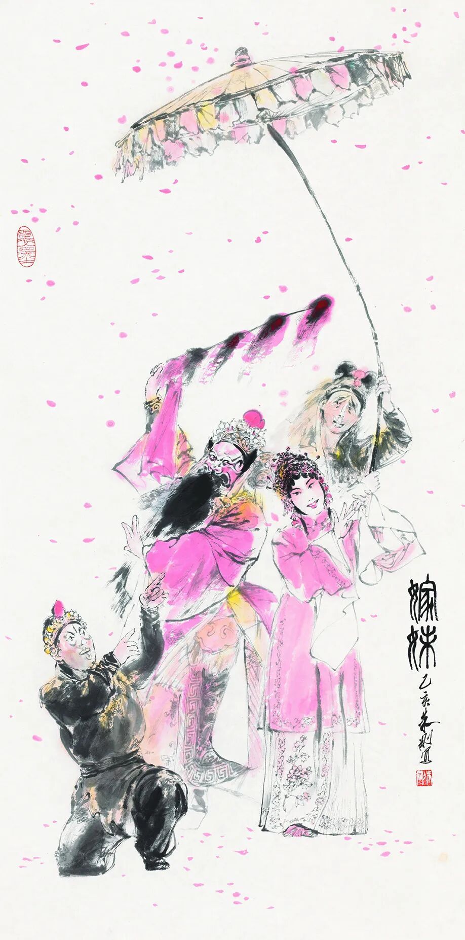 在中国画体系中,戏曲人物画是相对小众的门类。在前辈大师关良、林风眠等人开创的高度概括性风格之外,朱刚探索出了一条“写实与写意相结合”的路径。