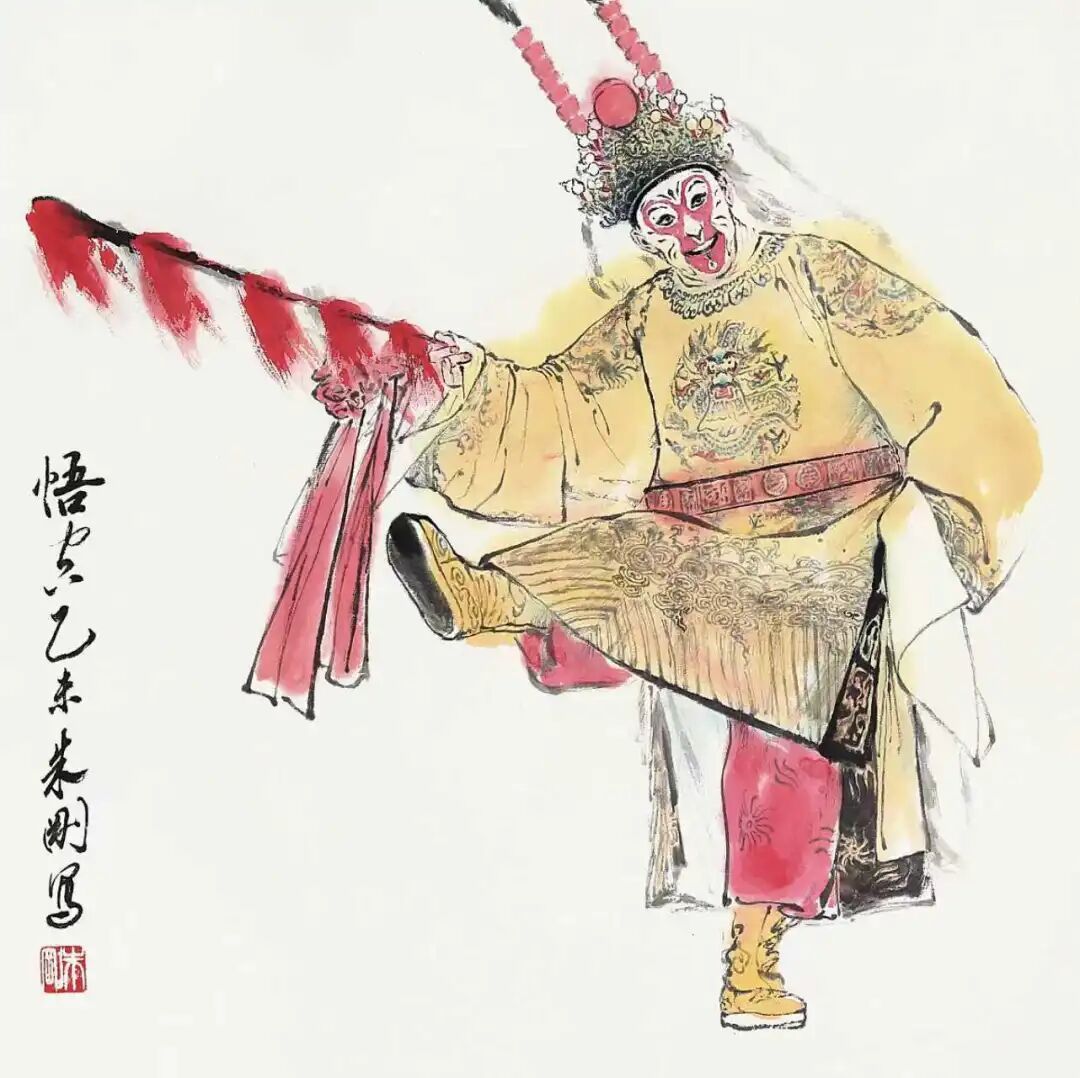 对朱刚而言,戏曲人物画是中国传统水墨与戏曲艺术两种国粹的叠加,魅力在于聚焦“舞台之上”的瞬间,这与西方绘画直接描绘戏剧故事场景的传统迥然不同,是一种独特的东方美学视角。他的作品也曾亮相纽约时代广场,成为向世界传递中国文化精神的有效视觉载体。