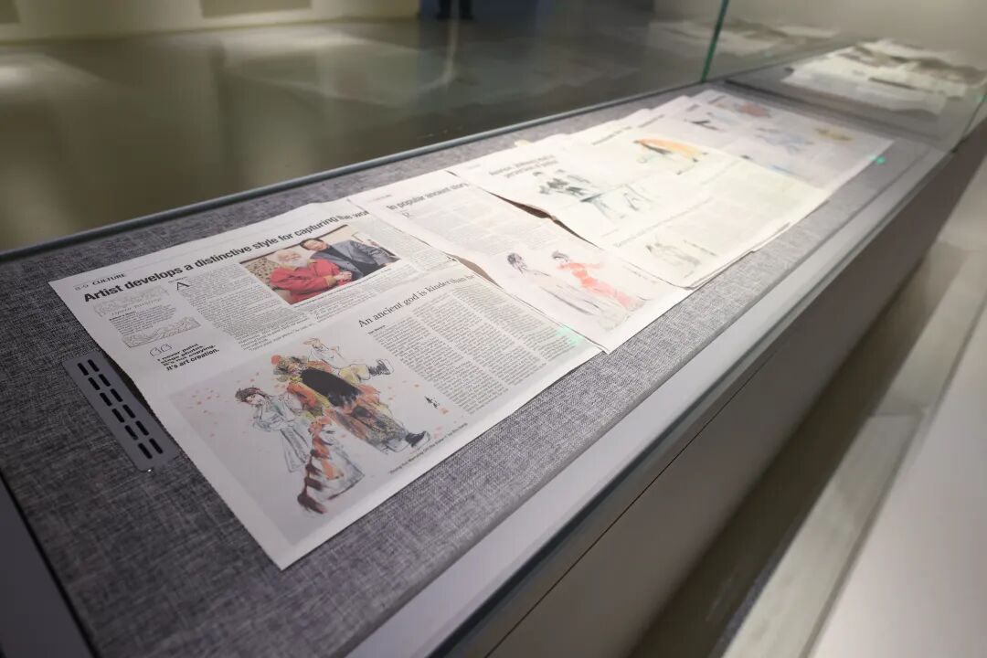 朱刚在“写实”与“写意”之间形成的个人风格,也反映了海派戏曲人物画的发展脉络。为了让观众更好地理解作品,展览特别设置了作品解读区,讲解画作背后的戏曲故事。观众可以在这里细细体会水墨与戏曲结合所产生的独特韵味,感受其中的文化内涵和时代特点。