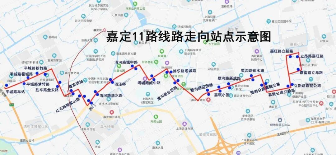 主要接驳:从轨交11号线嘉定西站出来,坐公交嘉定11路可直达项泾桥站。