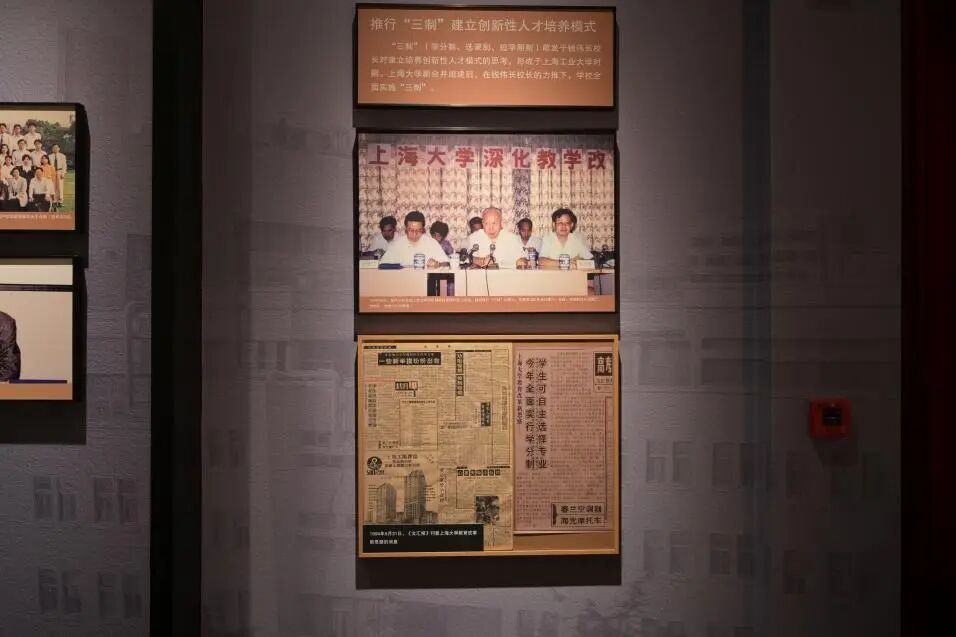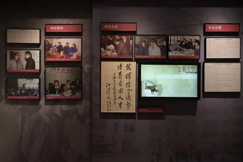 西摩楼一楼展陈的是上海大学奠基时期和再造时期的校史。新中国成立后,上海科学技术大学、上海科技高等专科学校、上海工业大学三校继起,自力更生,艰苦奋斗,为国家和上海培养了大批适应“高精尖”工业发展需要的科学研究和工程技术人才。1983年,上海市人民政府复办上海大学,学校励志继承20世纪20年代上海大学的光荣传统。