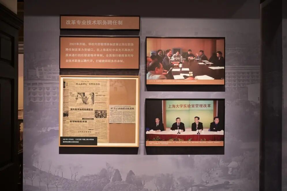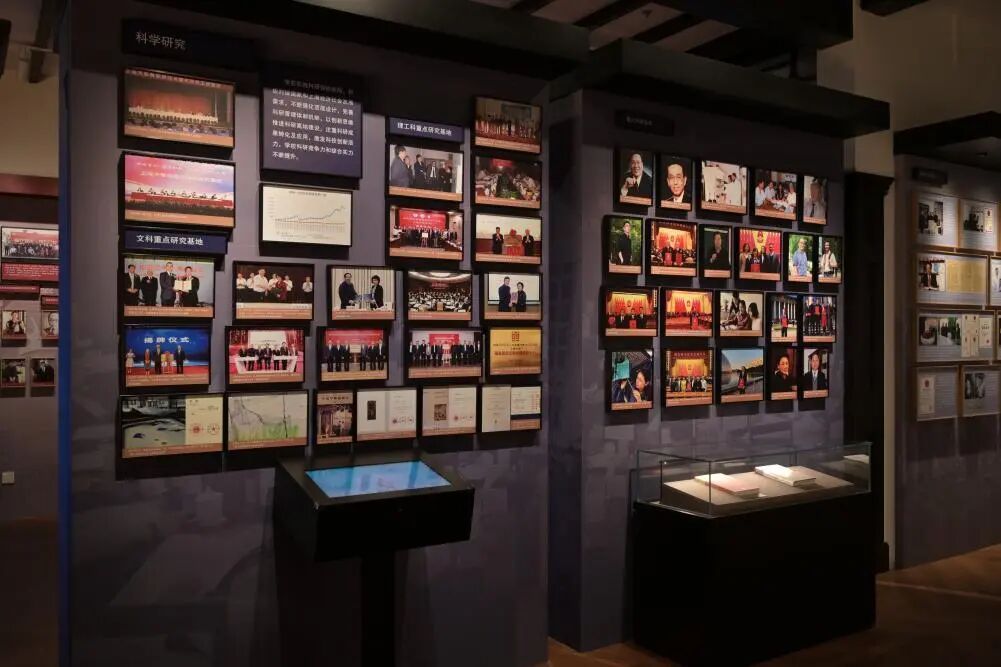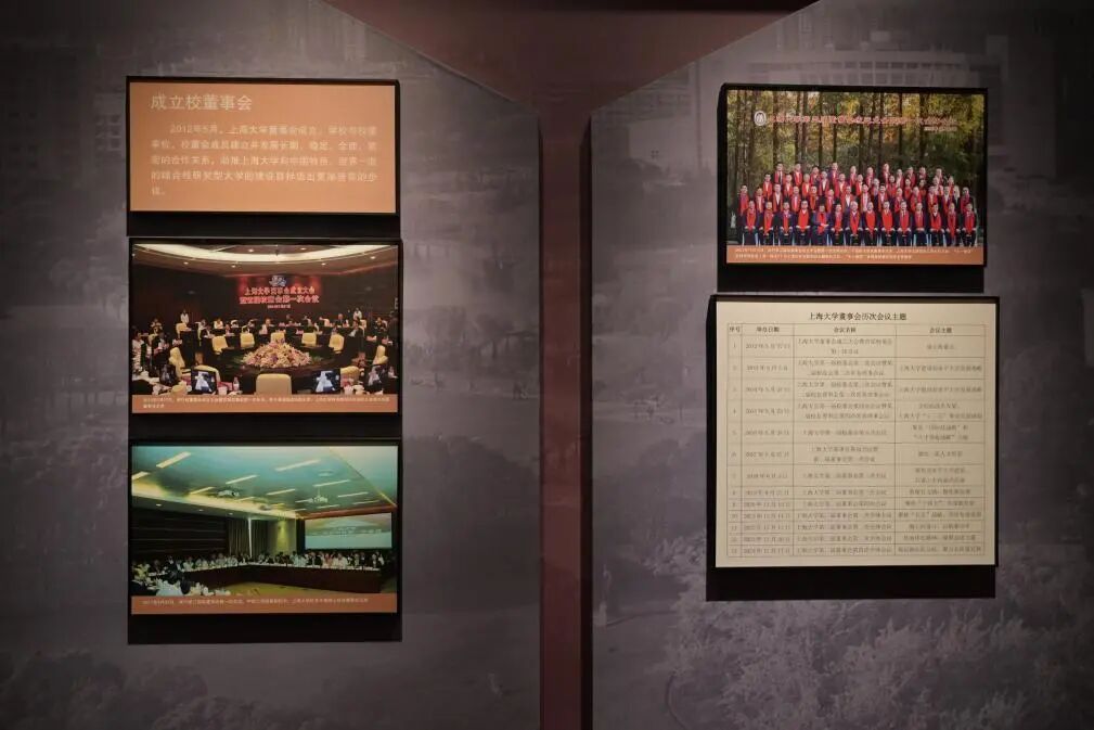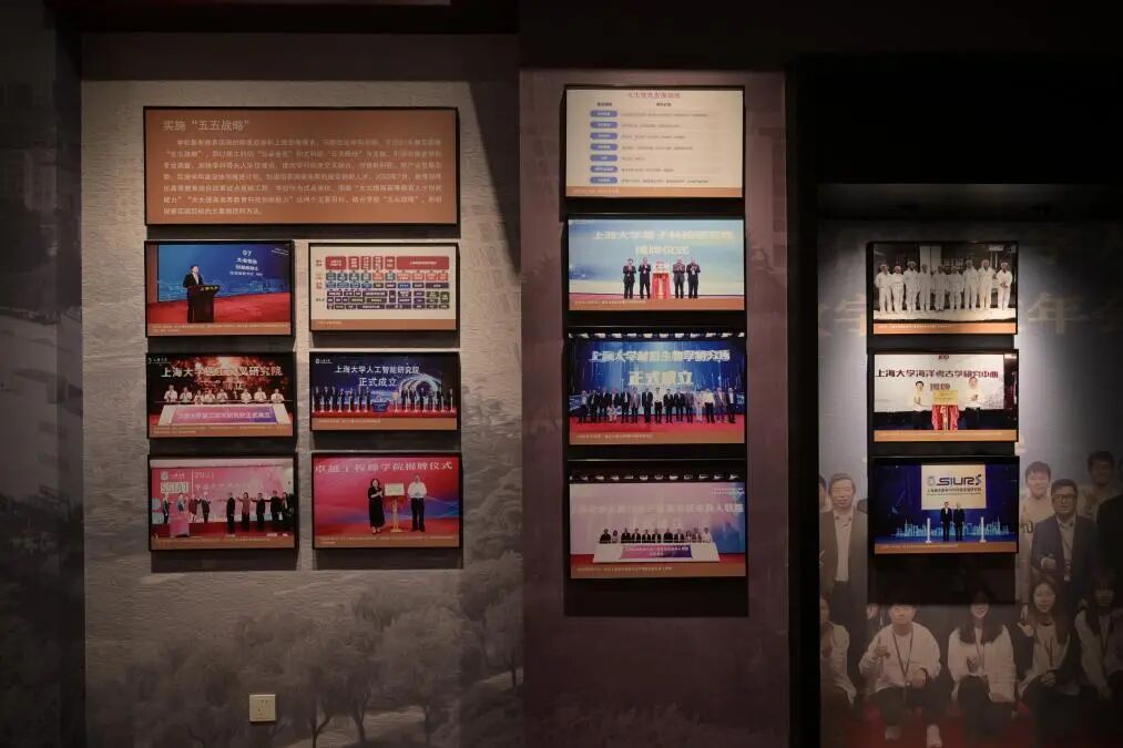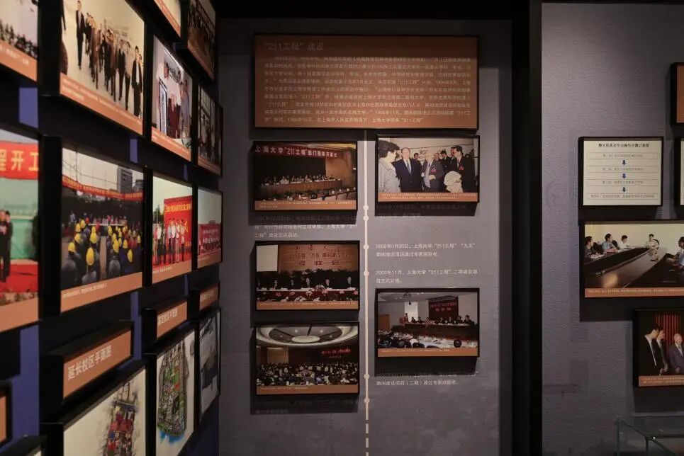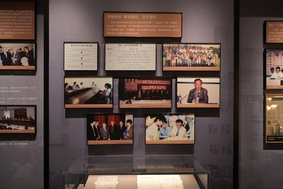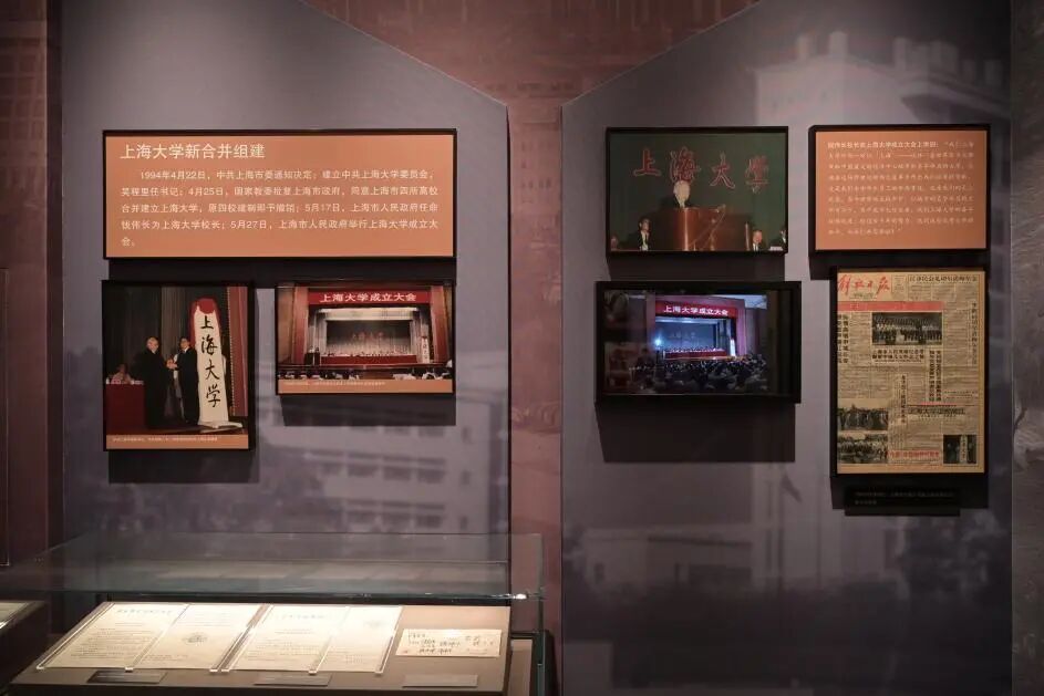 西摩楼二楼展陈的是上海大学自1994年5月27日新合并组建以来的校史。为了贯彻中共中央、国务院颁布的《中国教育改革和发展纲要》,优化上海市高等教育布局结构,提高办学效益和教学质量,适应上海市经济建设和社会发展的需要,上海市人民政府决定将上海工业大学、上海科学技术大学、上海大学和上海科技高等专科学校四校合并,建立新的上海大学。1994年4月,国家教委批复同意。这四所学校为上海大学跨入发展新纪元奠定了厚实的基础。现今的上海大学是上海市属的综合性研究型大学,是教育部与上海市人民政府共建高校,是国家“211 工程”重点建设高校、上海市高水平地方大学建设高校,是国家“双一流”建设高校。