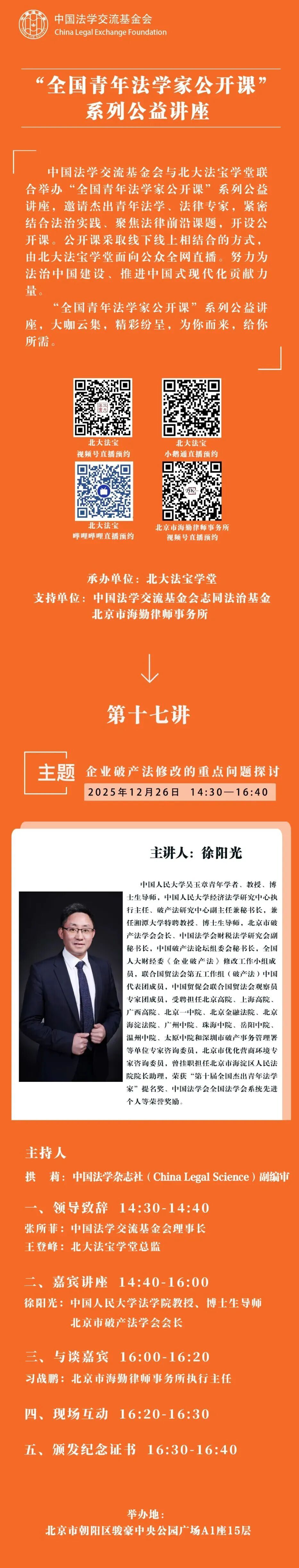 预告|徐阳光教授主讲“全国青年法学家公开课”系列公益讲座第十七讲
