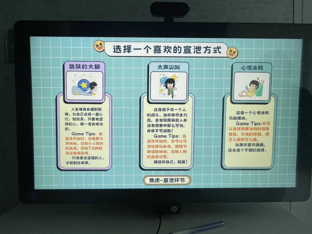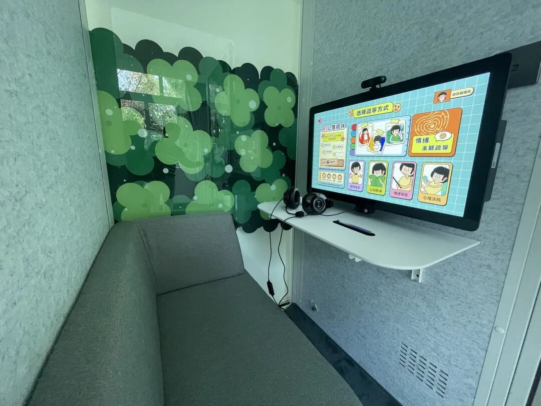 走进“AI智能情绪疏导小屋”,只见这间约1平方米的小屋内有一块电子屏和一张舒适的沙发。小屋每次可接待一名学生,他们在这里不仅可以做一些趣味心理小游戏、心理测评,还能跟AI伙伴诉说自己的苦恼。