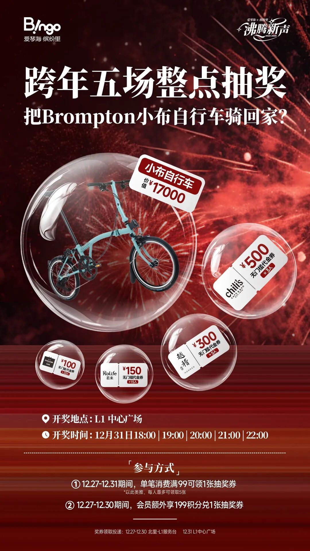 12月27日-31日,单笔消费满99元,即可领取一张抽奖券,参与舞台整点抽奖。