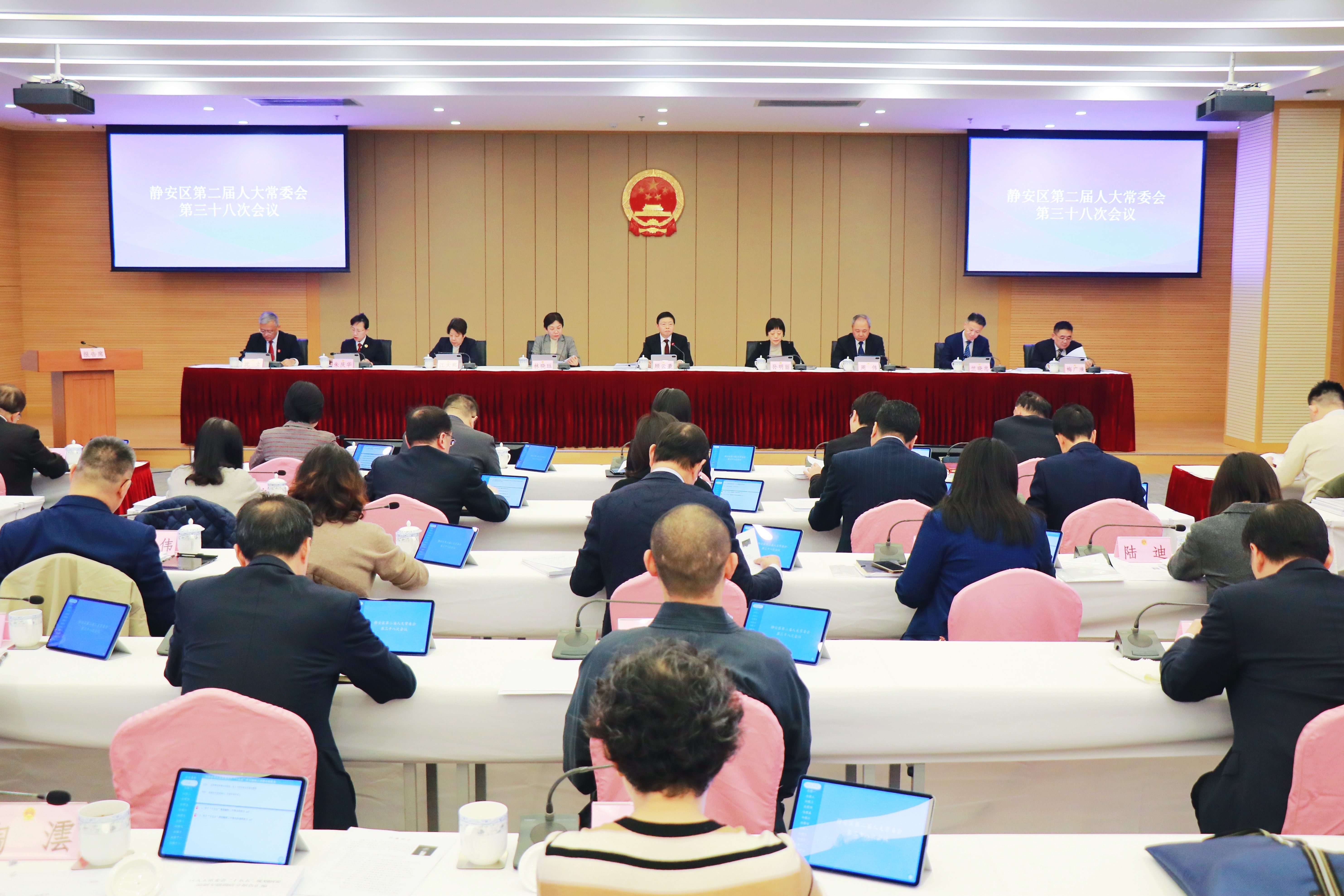 12月24日,区二届人大常委会召开第三十八次会议。区人大常委会主任顾云豪主持会议,副主任孙明丽、林晓珏、周伟、江天熙及其他常委会组成人员出席会议。区委常委、区监察委员会主任竺晓忠,区委常委、常务副区长傅俊,区委常委、副区长梅广清,副区长朱羡,区人民检察院代理检察长朱庆华,区人民法院有关负责同志,区有关部门和单位负责人、区人大各街道工委负责人、彭浦镇人大主席,部分市、区人大代表和区人大机关有关同志列席会议。5位市民旁听会议。