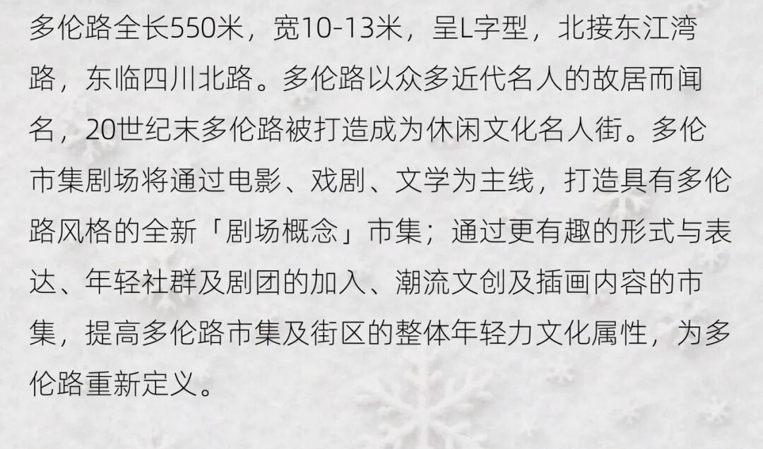 就在多伦路这个“露天”剧场,届时观众将随着剧情经历爱恋、争吵、遗忘和重新选择的过程,会在故事里照见自己的关系、自己的犹豫、自己的渴望……
