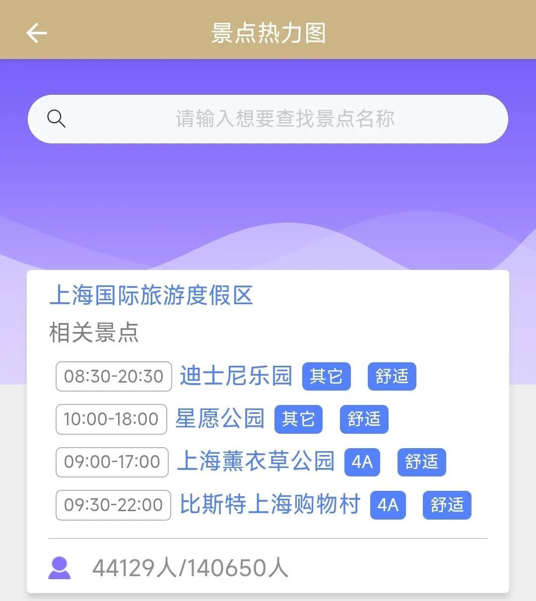 进入方式:“随申办市民云”(APP/微信小程序/支付宝小程序)首页搜索或点击“景点热力图”进入服务专区。