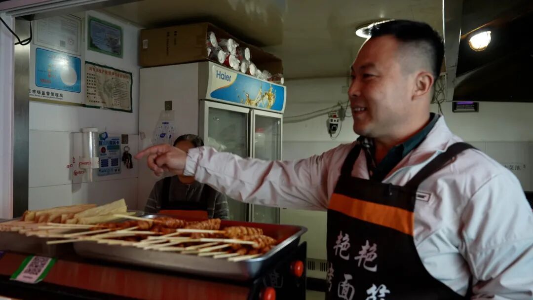 这是他在上海的第九个年头。刚从山西霍州来时,他从推着小车摆摊兼职做起,初来乍到生意有些冷清。他咬咬牙,把烤好的面筋一串串递给路人:“尝尝,不要钱。”那劲道的口感、焦脆的外皮,裹着他从老家背来的辣椒面,像一颗种子,在陌生土地里悄悄发了芽。回头客也渐渐多了起来。