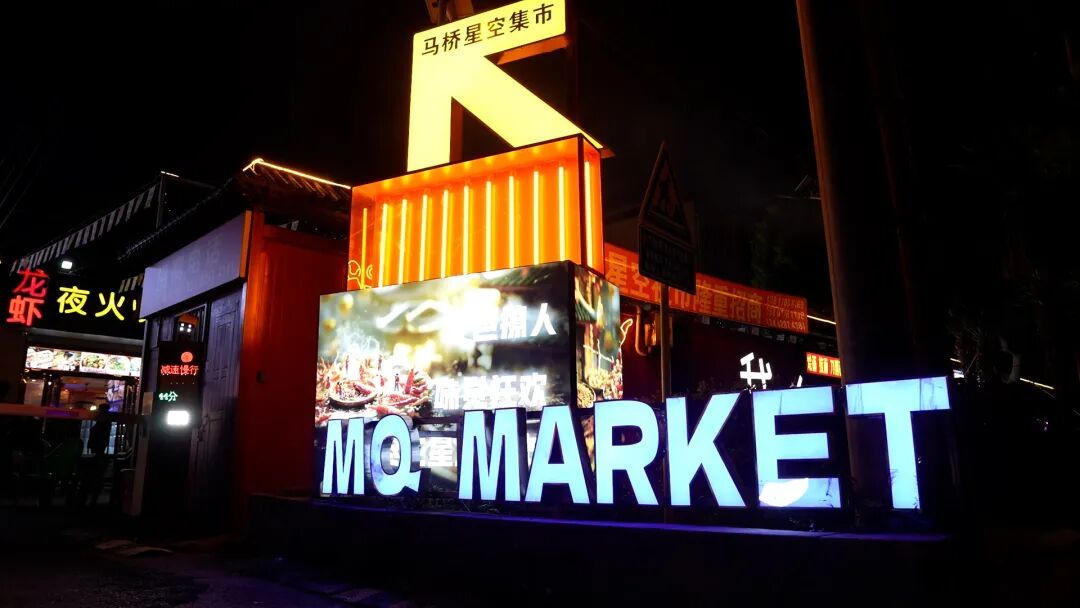 前两年,马桥镇政府在星空集市区域内设立21个集装箱摊位,扩大马桥南部商业街区的影响力与发展业态消费经济,鼓励周边比较有特色的网红小吃摊位加入星空集市的商业街区内。至此,成耀华便有了这个固定店面,他和爱人也干得更起劲了——别人收摊,他多烤两小时;夜色最深时,他还在琢磨口味和火候。