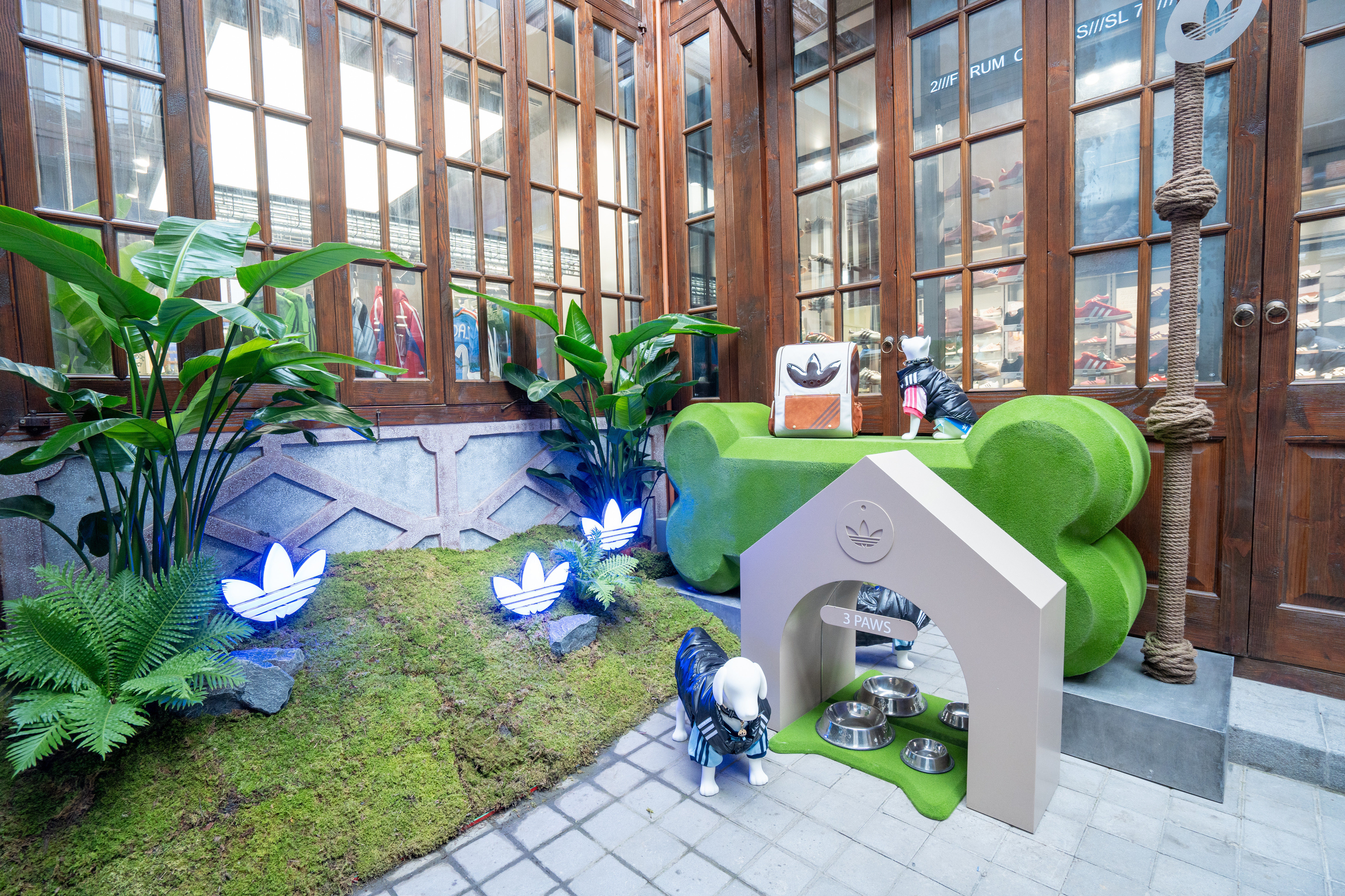 店内还特别打造了“三叶草宠物系列”专属体验区,并与石库门建筑中标志性的天井庭院空间完美融合,将人宠之间的亲密情感联结,通过家庭式庭院的穿搭与生活场景进行具象化演绎,为消费者提供温馨且独具格调的零售新体验。