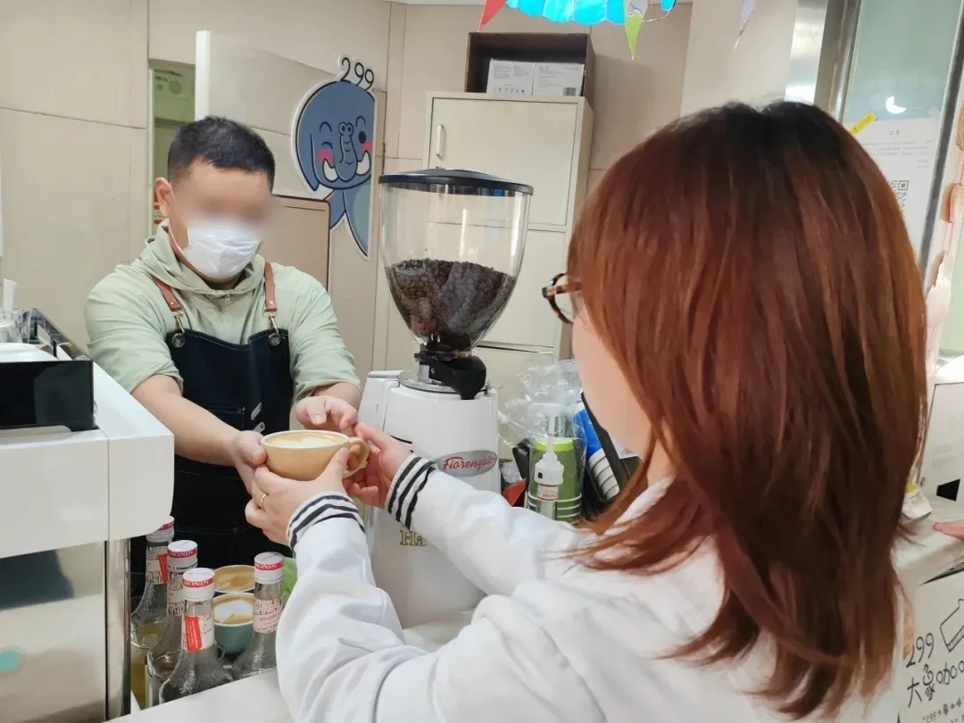 迈着轻快的步伐,小宇(化名)早早地便来到了区精卫中心“299大象咖啡馆”。清洁地面,检查咖啡机、磨豆机、冰箱等设备运行状态,将咖啡豆、牛奶、糖浆等原料补齐,每一个环节小宇都做得认真且到位。