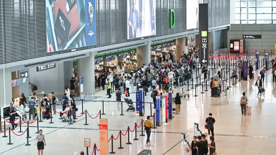 虹桥机场沪渝快线是连接长三角地区和成渝地区两大城市群的核心航空运输通道,日均计划往返航班量达到32班,今年预计运输旅客超183万人次。