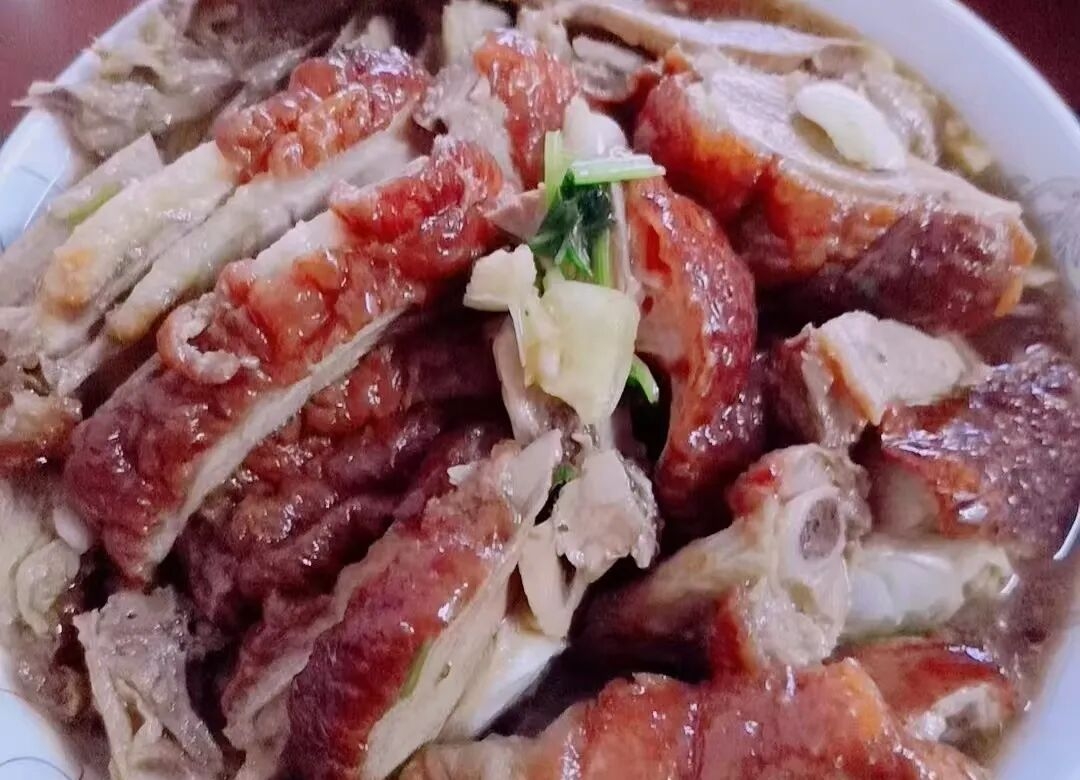 不同于北京烤鸭金黄色的外皮,芜湖烤鸭表皮红润油亮,非常肥美,烤制出来可以感受到从骨子里散发出来的清香鸭肉,吃起来皮脆肉嫩,汤汁美味香溢千里。
