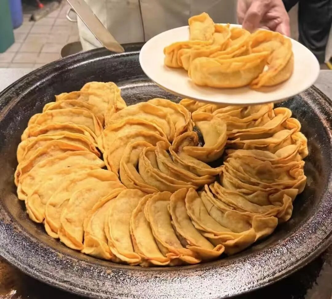 牛肉锅贴是南京的经典小吃,外皮煎至金黄酥脆,内馅的牛肉混合牛蹄筋高汤,咬开瞬间汁水四溢,咸甜交织。清晨的早点摊前,一份锅贴配一碗牛肉汤,是南京人开启活力一天的标配。