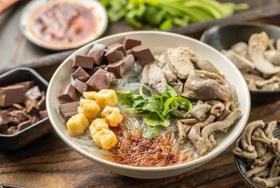 鸭血粉丝汤南京小吃的 “灵魂担当”,鸭血嫩滑、鸭肝绵密、鸭肠脆韧,配上爽滑的粉丝与鲜香的鸭汤,撒上葱花与辣油,一口鲜掉眉毛。
