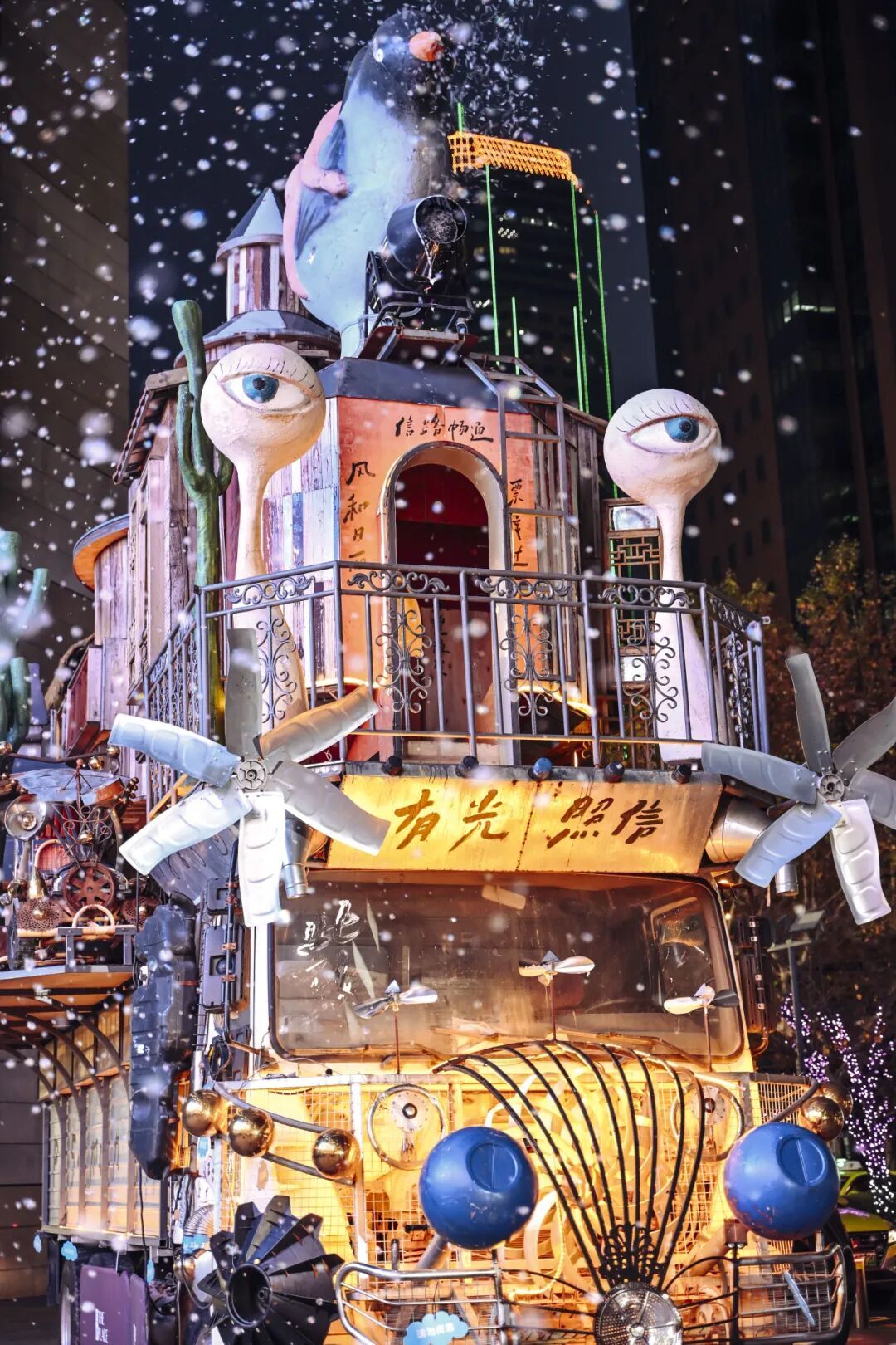 展览期间,多场围绕“陪伴”与“共创”的限定内容陆续展开。“沙漠邮局”巨型邮车装置在特定时段开启浪漫飘雪模式,千片雪花缓缓飘落,为上海冬日点亮精彩瞬间。天马行空的“怪车巡游嘉年华”,集结10多辆可移动“怪车”,沿着丰尚街缓缓启程,引领观众展开一场行进式的奇境探索。