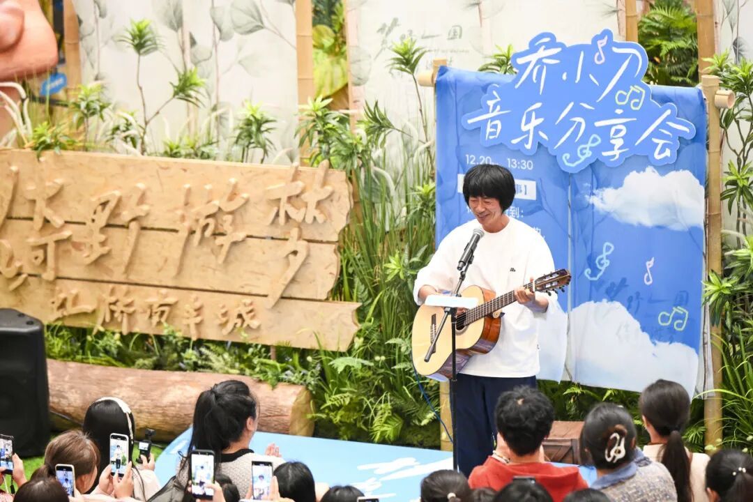 “荒野之国”诞生于云南丽江,是乔小刀于2020年亲手为孩子搭建的游乐园。比奇幻更动人的,是它背后“一个父亲为孩子造梦”的初心。一段因陪伴生出的童话,也成为无数人逃离焦虑、找回纯真的精神栖息地。近日,乔小刀亲临展览现场,带着木吉他,与观众面对面,分享那些藏在木头、铁皮与创作背后的故事,用民谣为这个童话世界注入最真实的情感温度。