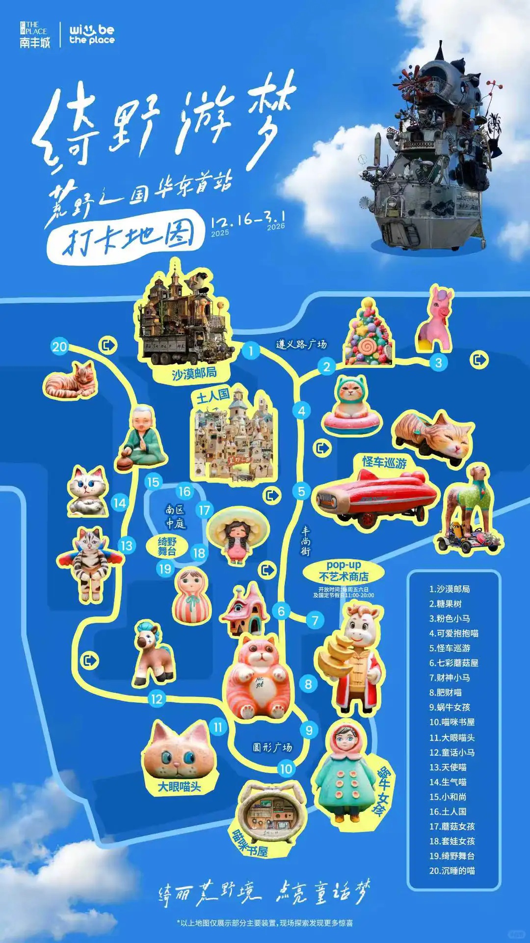 “本次展览全面升级了内容规模与沉浸体验,在保留‘荒野之国’原生艺术气质与创作逻辑的基础上,通过空间利用、动线设计与视觉叙事的全新表达,有机衔接自然想象与都市秩序。并借助邮车飘雪、马戏团巡游、星愿音乐会等多元活动,为市民游客打造了更具层次感与参与感的公共文化场景。”虹桥南丰城相关负责人介绍。