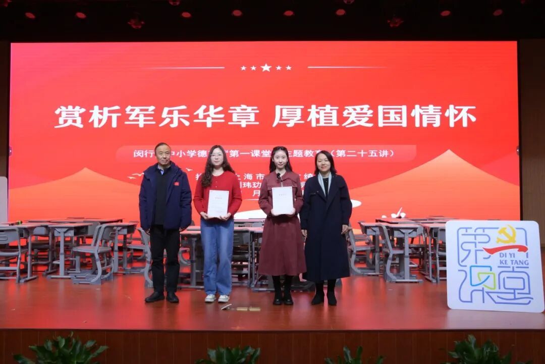 闵行区教育学院学科德育研究室主任、区思政课一体化研究中心主任秦书珩对本次课堂进行专家点评。他提到:“两位老师分工协作,将音乐的审美教育和道德与法治学科的思政教育非常好的融为一体,展现了跨学科协同育人的生动实践,也是对课堂教学改革的创新性探索,让音乐不再只停留于旋律的分析和技能的一种训练,而成为学生触摸历史、感悟精神的一种载体。”