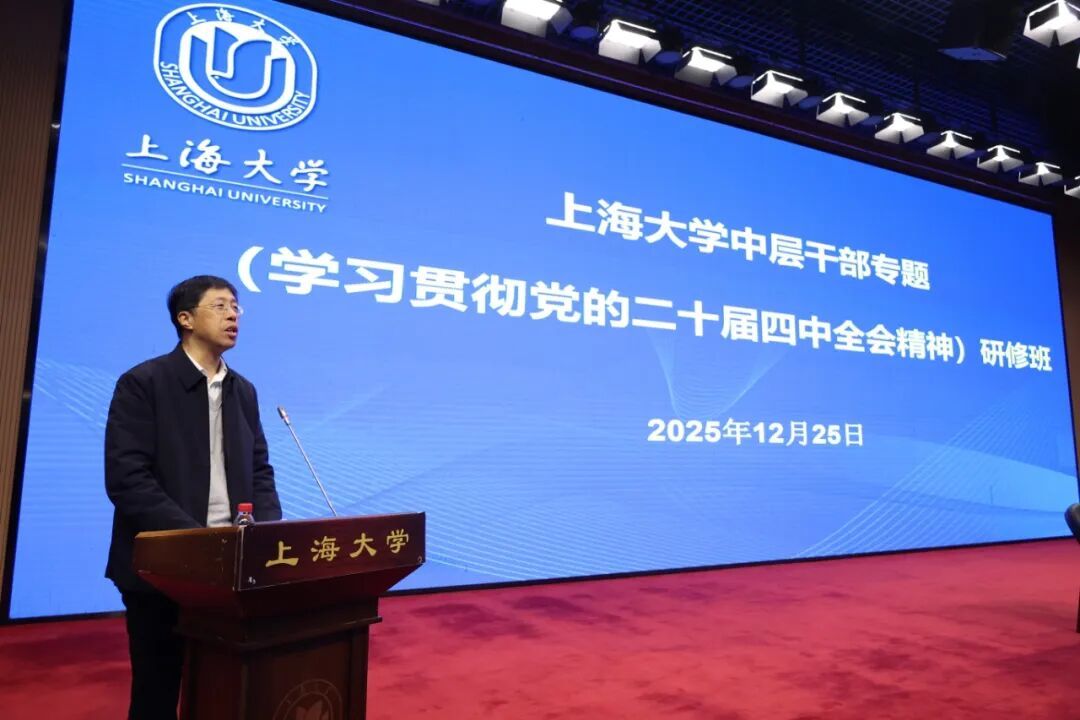 12月25日上午,上海大学中层干部学习贯彻党的二十届四中全会精神专题研修班开班。校党委书记吴坚勇出席开班式并作动员讲话。副校长张建华出席并作专题报告。全校各二级单位中层干部参加培训。开班式由校党委副书记段勇主持。