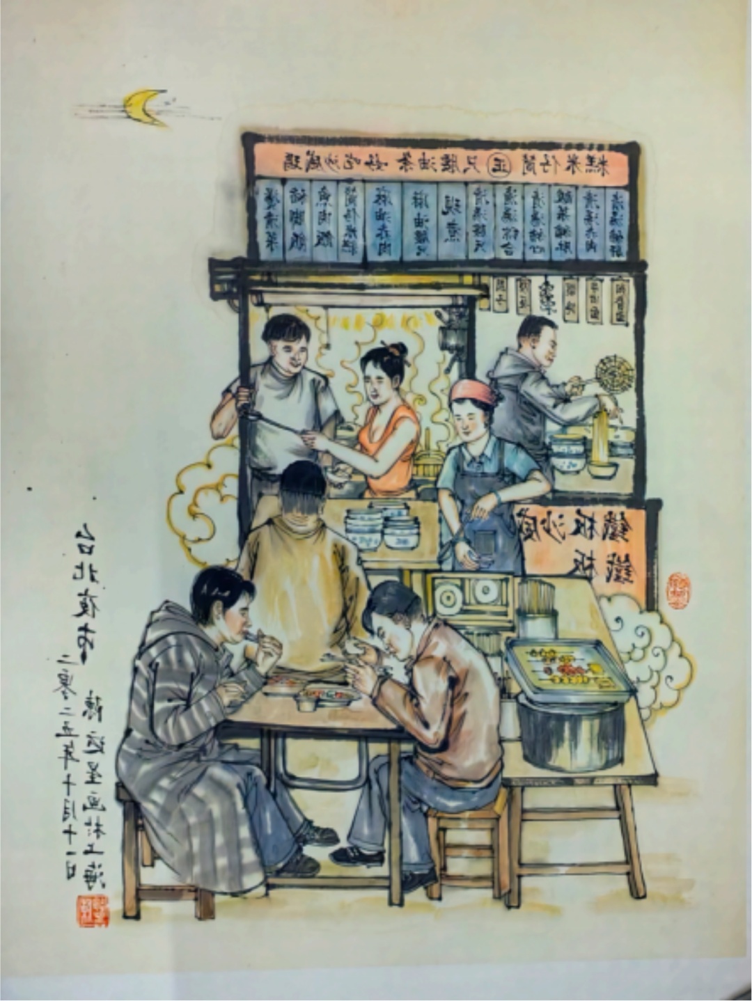 想起母亲常唠叨说想吃的“蚵仔煎”,一看正好有蚵仔煎的小吃摊,就赶紧排起了队。那一天, 我买了几份给母亲吃,她了却了心愿, 非常高兴。