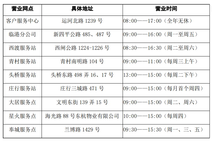 尊敬的天然气用户: 为进一步提升服务质量,优化用户服务体验,并确保业务运营的高效与顺畅,我公司依据当前用户分布状况及实际业务需求,对天然气营业网点进行了优化与调整。现将具体调整方案公告如下,自2026年1月1日起正式实施,节假日安排另行通知。 您可以关注“海贤能源”公众号进入“微客服”平台,在线办理各项业务;也可以拨打24小时金春服务热线:57419999进行电话咨询。 因营业网点调整给您带来的不便,我们深表歉意,并衷心感谢您对海贤能源服务工作的理解与支持。我们将持续努力,为您提供更加优质、便捷的服务。 特此通知。 上海海贤能源股份有限公司 2025年12月25日