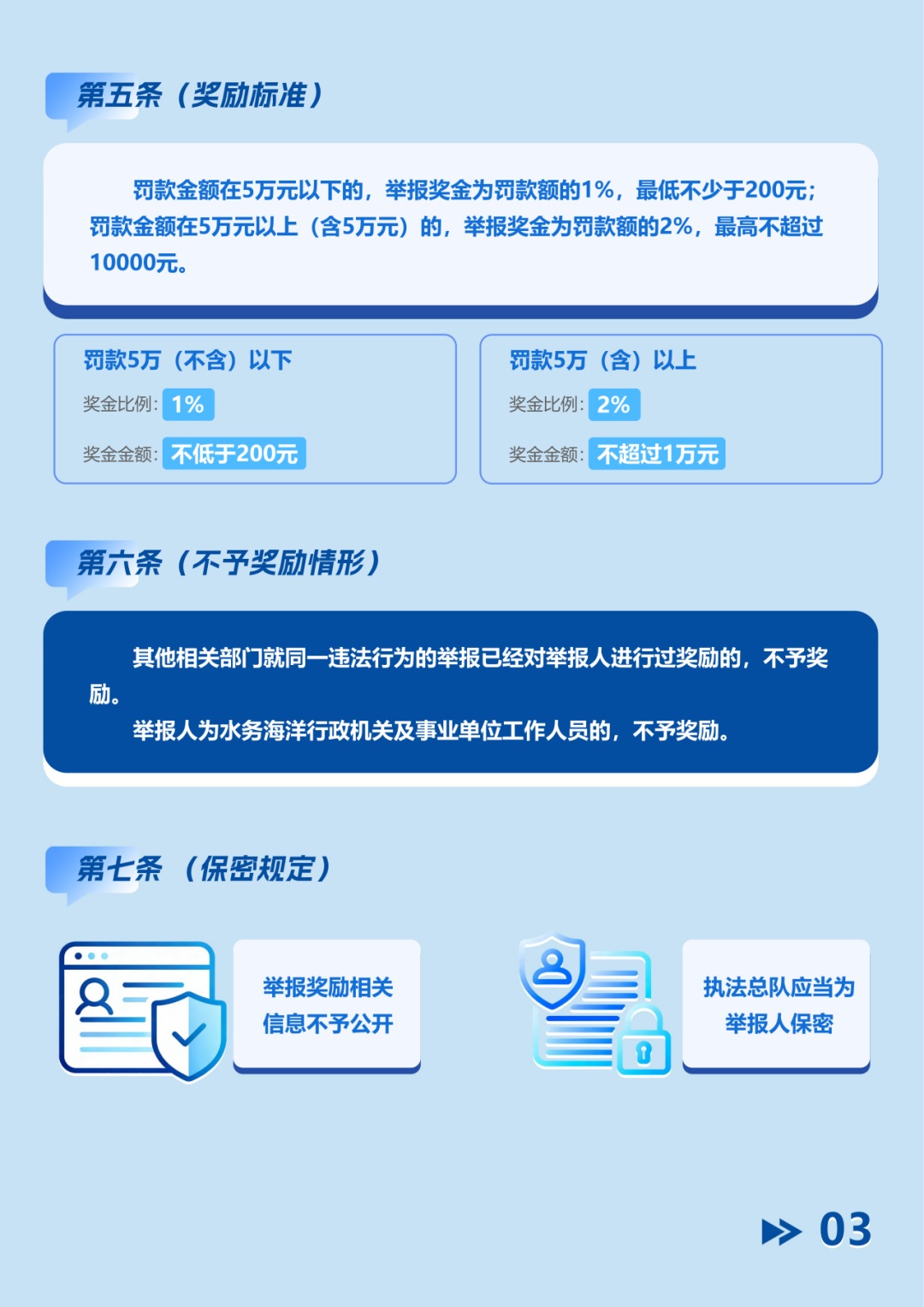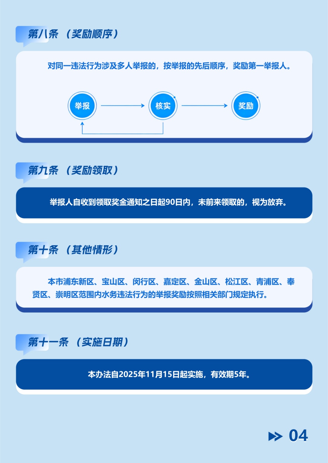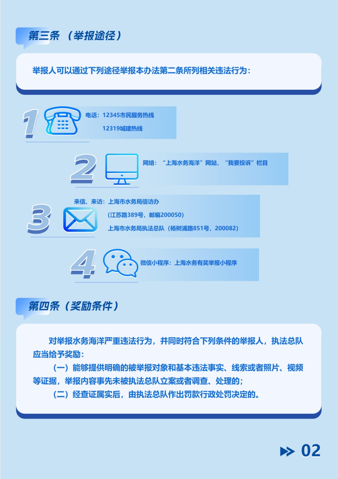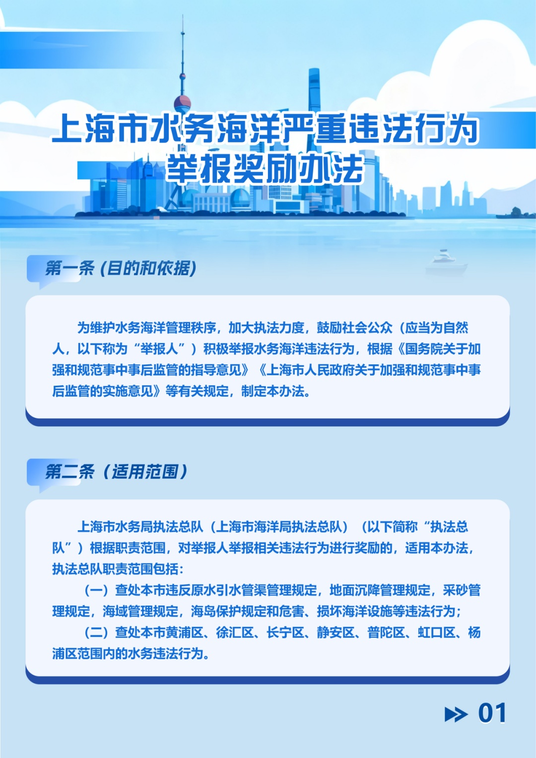 为凝聚城市水环境保护合力,进一步鼓励市民积极参与水务海洋监督,上海市水务局依据《国务院关于加强和规范事中事后监管的指导意见》及本市相关实施意见,正式出台《上海市水务海洋严重违法行为举报奖励办法》。该办法旨在完善举报奖励机制,强化社会监督,提升执法监管效能,共同守护申城水清岸绿,详见下方图解。欢迎转发,携手共建美好水环境!