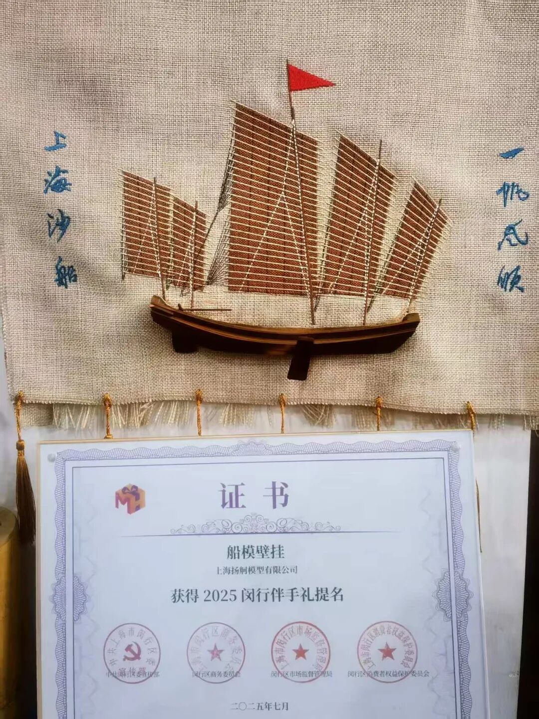 “我看到公园里的皮划艇很受欢迎,我正在研究做木制皮划艇。此外,我还要让手工木船插上智慧的翅膀,通过遥控器,让船开起来。”杨生美说。对此,儿子杨骋保持着务实的态度:“新产品是否经过市场调研?能否量产?”父亲则回应:“我要搞就搞别人没有的。总好过你那定制冰箱贴?”杨骋笑着算账:“我的冰箱贴是合作赞助的,零成本还有收益;您的创新可是实打实的投入。”杨生美的文创产品上海沙船获得了“2025闵行伴手礼提名”