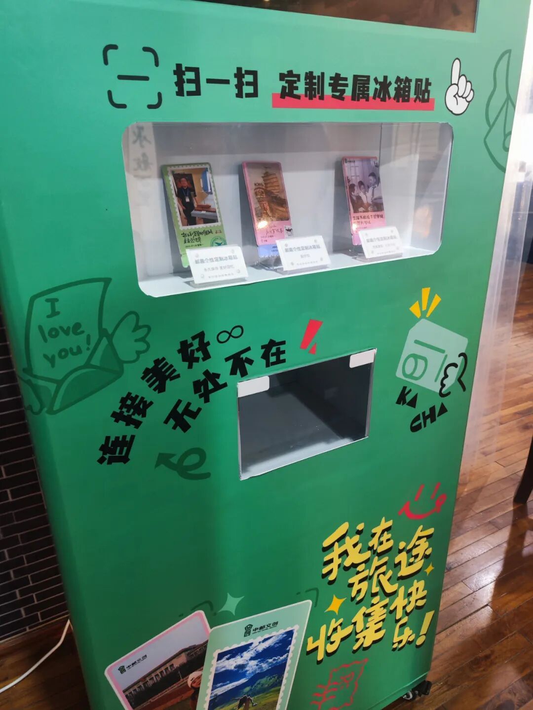 而在展示厅的另一角,还有一个与中国邮政合作的“绿箱子”,让游客能定制个性化的船模冰箱贴,把“非遗”带回家。此外,还有船模、小灯塔等文创。