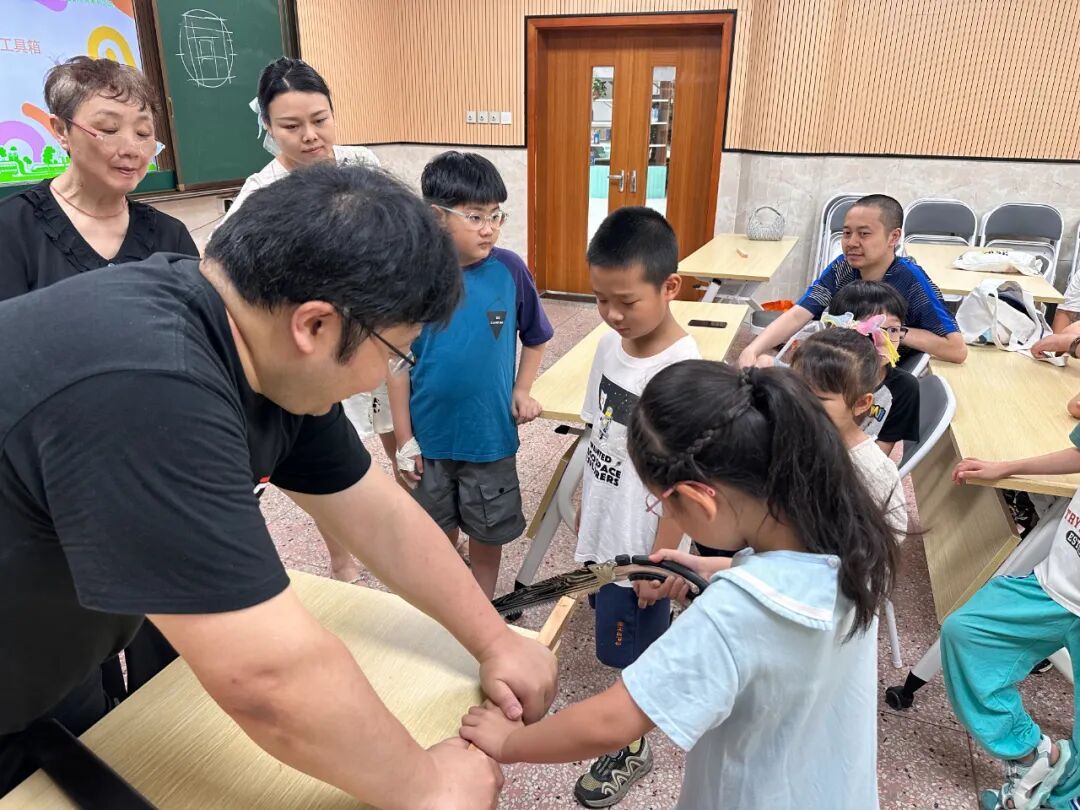 他还将课程送进校园,不仅教做船模,更引导孩子们体验刨木花、拉锯,并讲解船舶文化与航海知识。