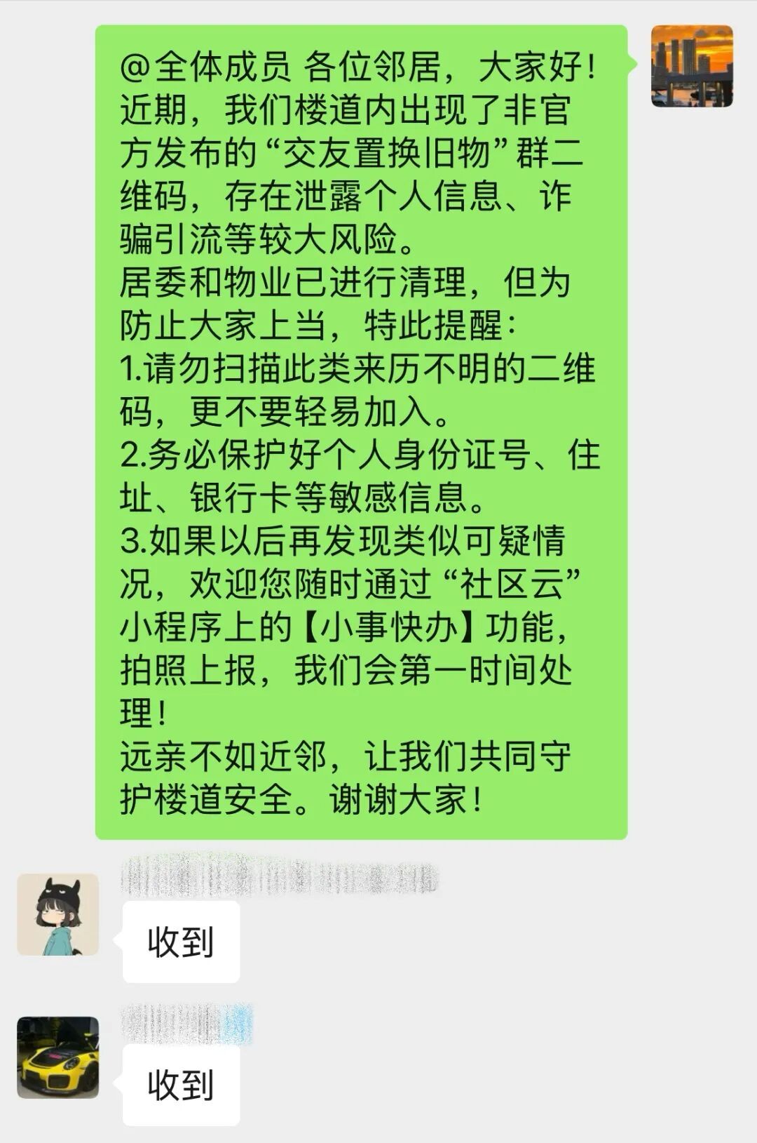 此事也催生了“线上预警+线下巡查”的双轨机制。据居民区书记介绍,社区民警会定期通过微信群发布防诈指南,物业也将张贴物巡查频次提升至每日两次,形成了从风险感知到源头阻断的治理闭环。