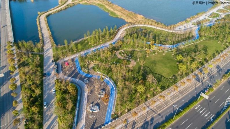 连续慢行系统建设:二环城市公园、春花秋色公园、80米环湖景观带等公园绿地均设置连续绿道系统,设有步行道和骑行道,打造以人为本的连续慢行系统。二环城市公园设置三级慢行绿道,春花秋色公园设置红色透水沥青路通往核心区,80米环湖景观带打造绵延8.2公里的环湖绿道系统,实现环湖景观漫步与慢行体验升级。