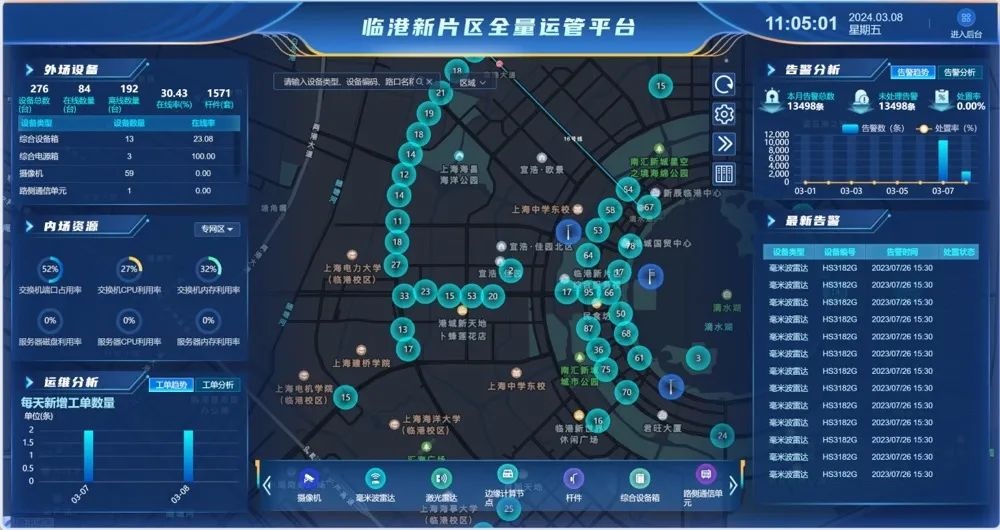 综合管廊先试先行:临港主城区综合管廊北起滨港大道,南至南港大道,全长约14公里。城区内云鹃路、水芸路管廊是临港新片区最先投入使用的,管廊总长3.6公里,全部采用预制拼装技术。综合管廊设置综合数字管理平台,管廊运营以控制中心为中枢大脑,实现日常综合管廊运营的可视化、统一化、集约化、智慧化管理,为新片区整体综合管廊运行提供经验累积和复制范本。