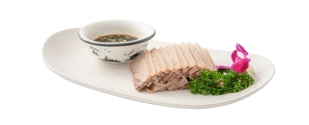 羊腿经老汤文火慢煮,压制定型后切出匀薄肉片。肉质紧实鲜嫩,蘸以秘制酱料,入口肉质鲜嫩非常,肉香纯粹。