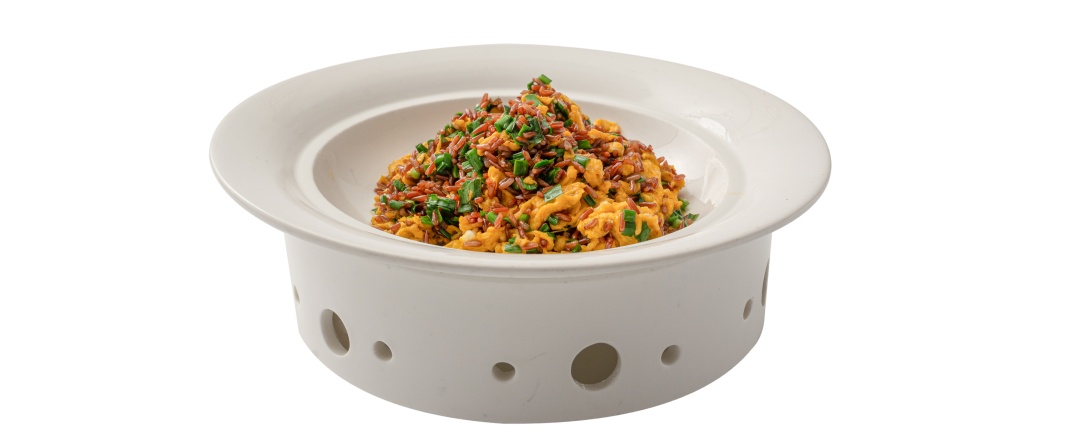 农家菜园的韭菜、自养土鸡的鲜蛋与本地红米。成菜蛋香浓郁,韭菜脆嫩,红米弹牙,三者裹挟着升腾的锅气,完美诠释了农家“便捷美味”的饮食智慧。