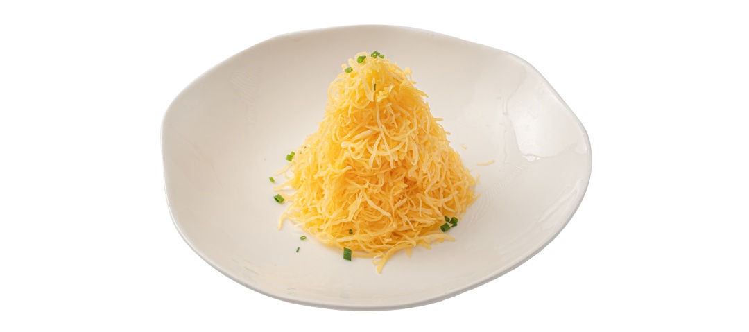 选用地理标志农产品——崇明金瓜,瓜肉遇热自成丝,无需雕琢。葱油一拌,清香扑鼻,口感爽脆,其天然之味正是乡村智慧与物产优质的最佳证明。