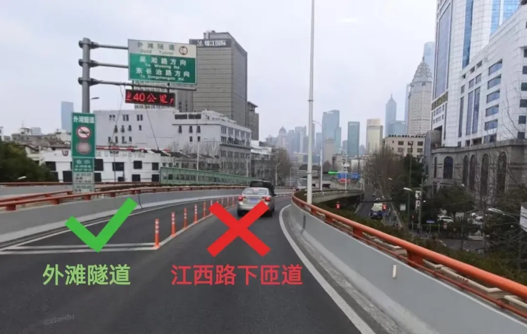 延安高架路南侧江西路下匝道实施临时关闭措施(进入外滩隧道的机动车允许通行)。