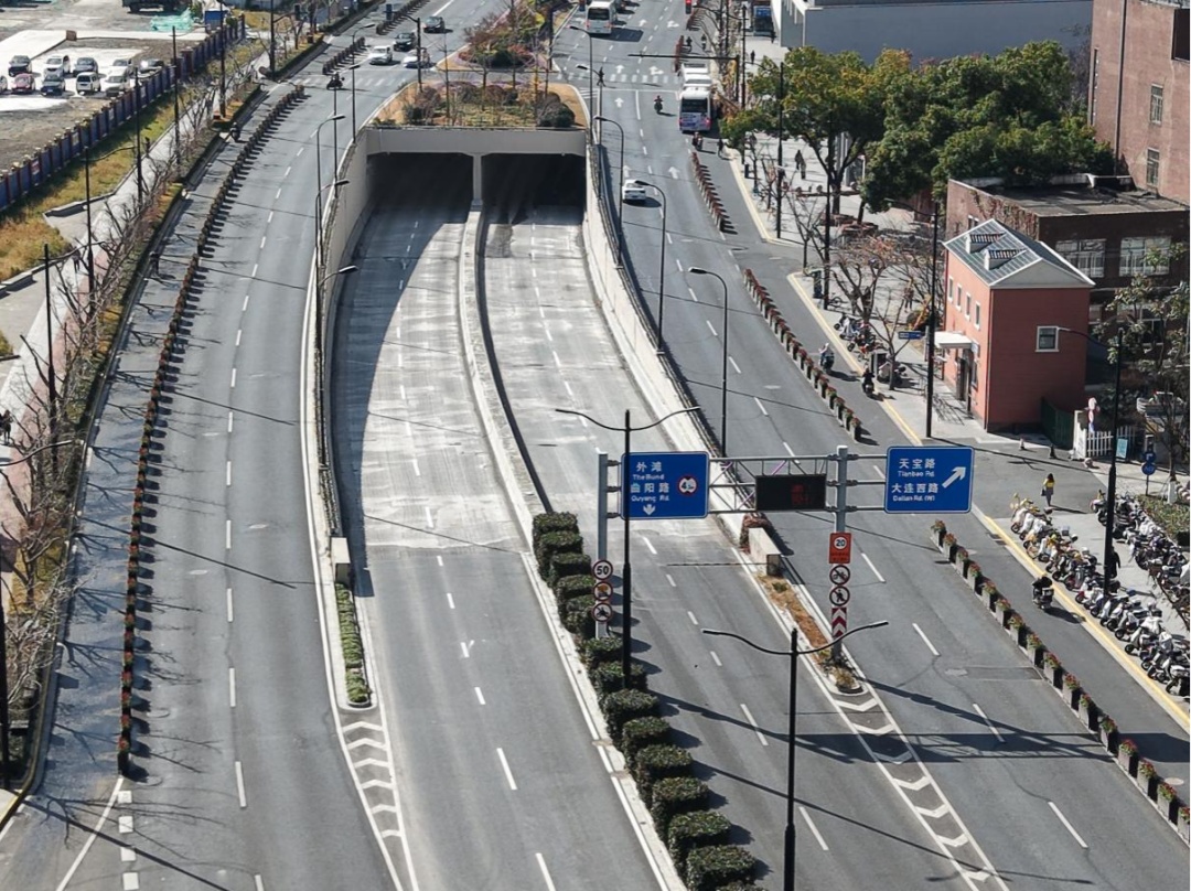 3、春节假期(2月14日12时至2月23日24时),四平路下立交地道双向通道进行全封闭施工。