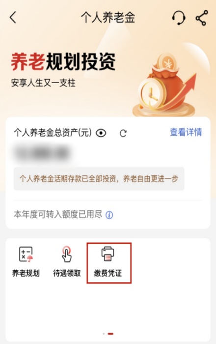 1.您可以在缴纳个人养老金的手机银行APP的“个人养老金”专区,下载《个人养老金缴费凭证》。以工商银行手机APP为例,点击首页【个人养老金】—【缴费凭证】,点击按月或按年查询。