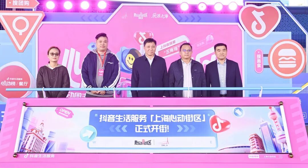 区委副书记、区长周海鹰,抖音集团上海公司负责人余建军,抖音生活服务业务副总裁陈鸣,百联又一城购物中心总经理孙秋璟,百联全渠道电子商务有限公司运营中心总经理林晔共同为抖音生活服务“上海心动街区”启幕。