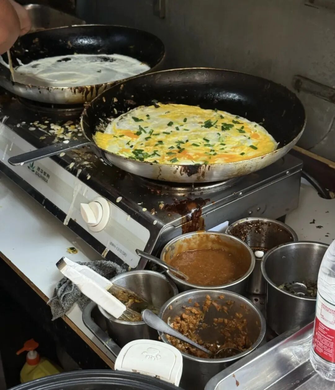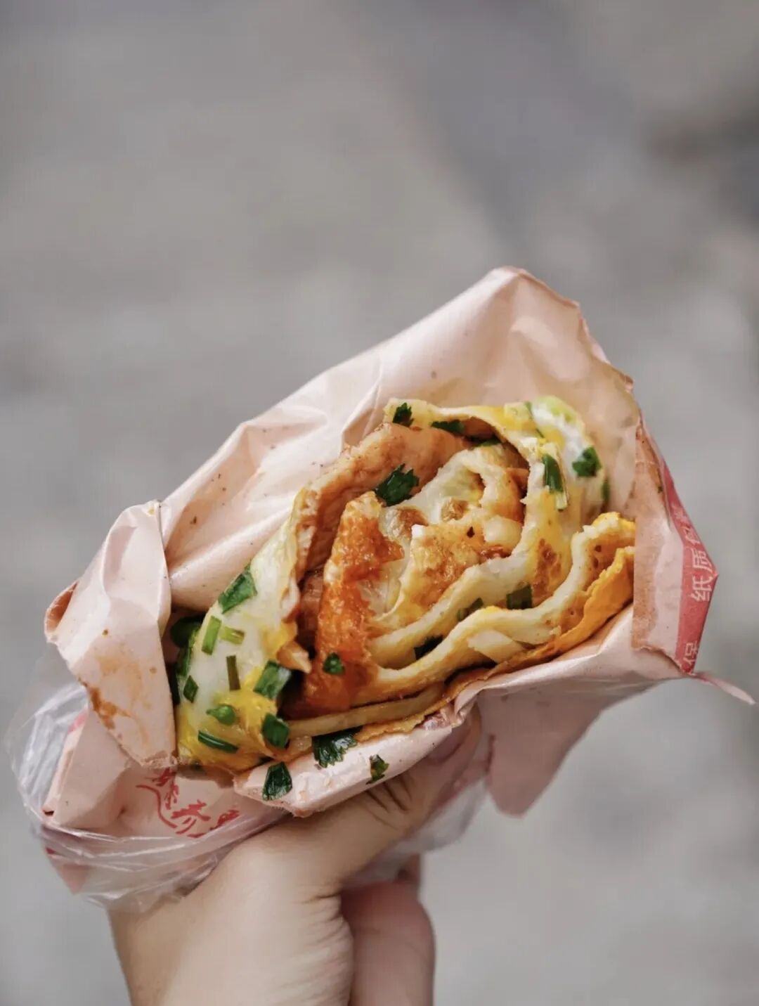 采用传统上海蛋饼工艺,软糯面皮包裹鸡蛋、土豆丝等配料,可定制加料,招牌为“双蛋+里脊肉”组合,酱料微甜。因免签政策吸引大量国际游客(如日韩、东南亚游客),成为体验上海烟火气的标志性摊位;社区“睦邻原点”项目为其提供中英文菜单支持,提升服务国际化。