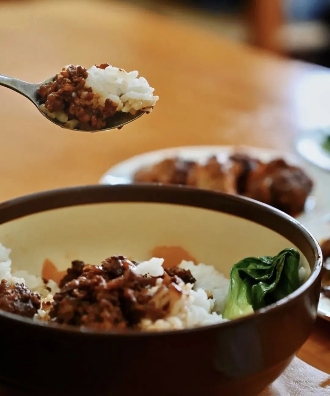 在繁华的长乐路上,这家古早味小店,据说已经在这里坚守了25年,以其地道的台湾风味和亲民的价格受到食客喜爱,招牌菜包括卤肉饭、咸蛋肉饼、青椒炒猪肝等,性价比高。