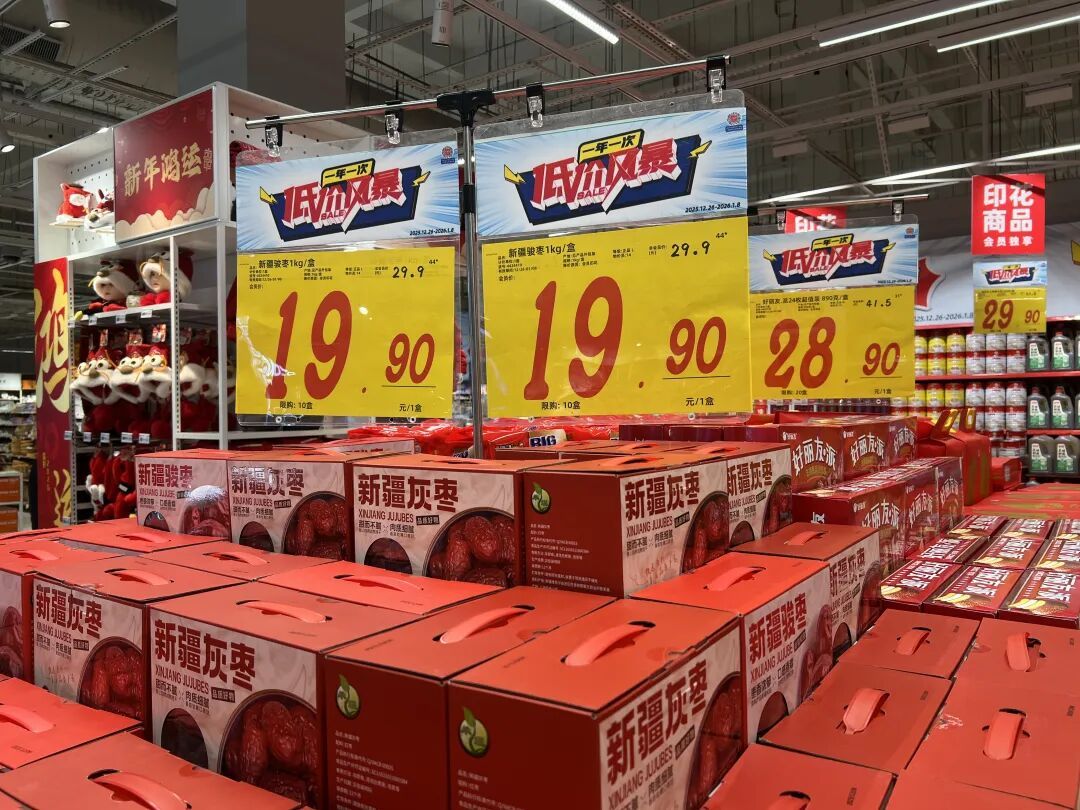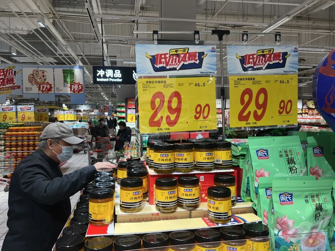 ,为市民带来低价与实惠。活动首日,记者在位于静安区的大润发(闸北店)注意到,门店内已挂上了“一年一次”“低价风暴”等字样的展示牌。陈列在门店主通道处的十余个展示柜及货架,也已摆满日用品、零食等特价商品,吸引不少市民驻足挑选。
