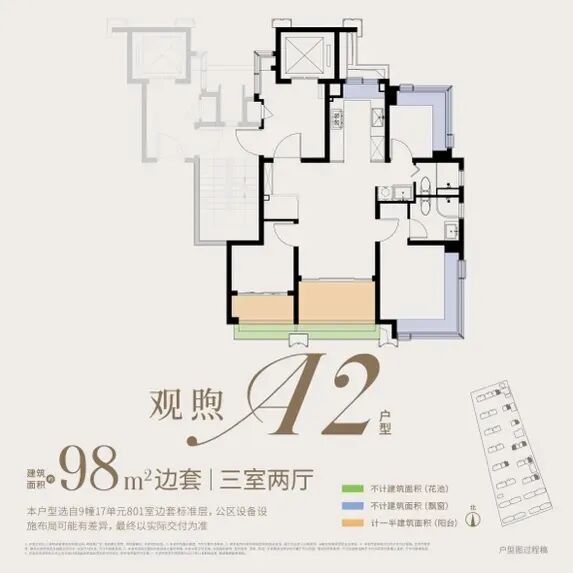 通过多阳台、多花池、全飘窗的创新设计,洋房标准层得房率高达97%,相当于额外获得约30平方米的使用空间。