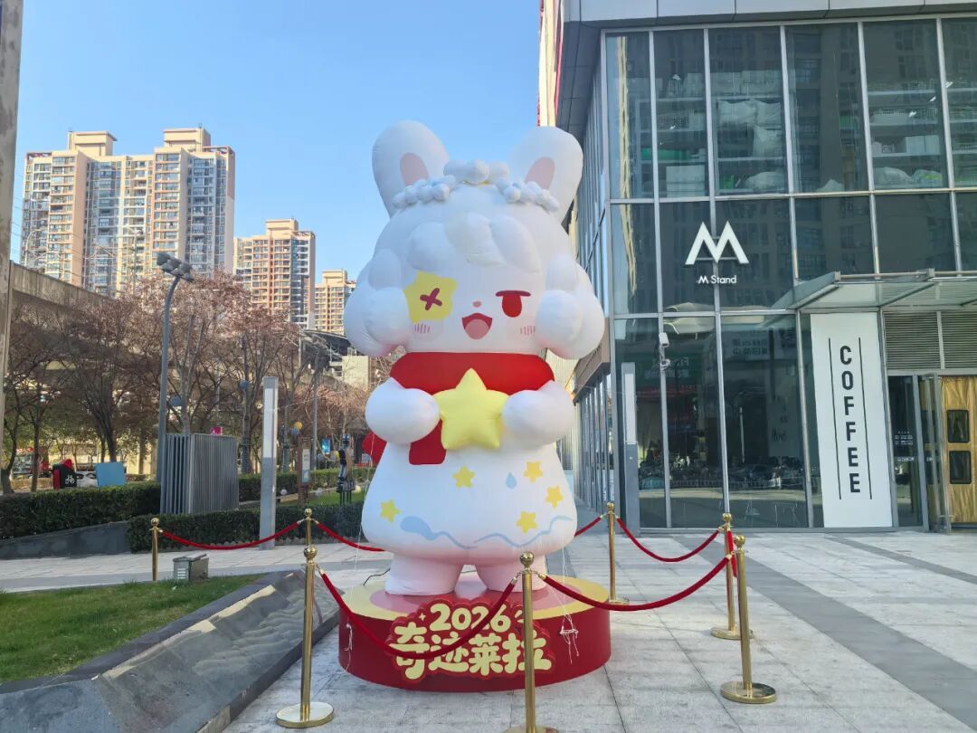 12月26日下午,记者在商场主入口看到,高达数米的巨型气模“奇迹兔莱拉”与“一路繁花小繁花”格外醒目,吸引市民驻足拍照。“造型非常抢眼,一来就感受到了满满的节日气息和新鲜感。”市民李先生表示。