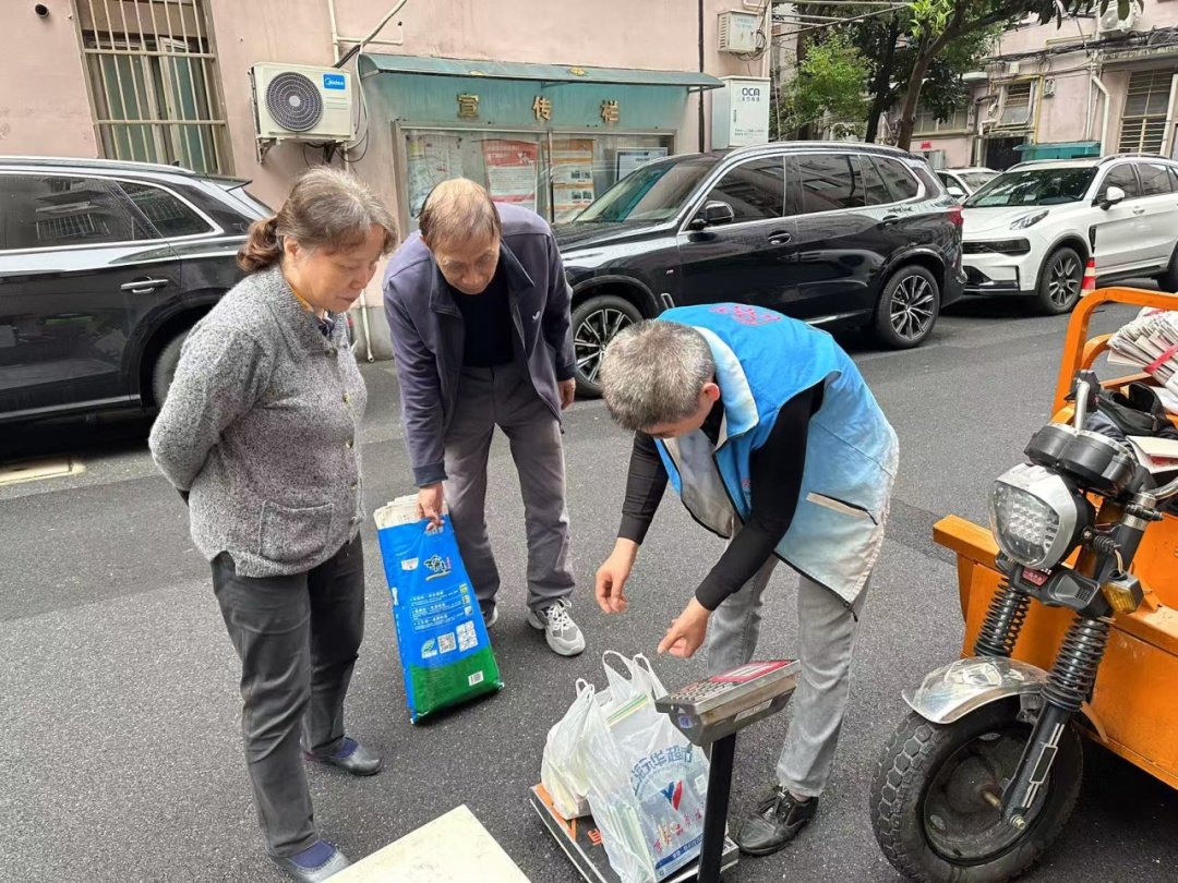 除了入户宣传与桶边指导,志愿者们还与“沪尚回收”工作人员协同,在小区内设立临时回收服务点。