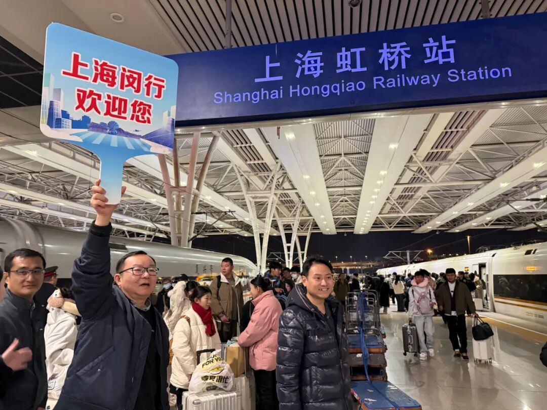 12月26日晚7时18分,G1378次“点对点”免费就业专列缓缓驶入上海虹桥火车站,37名来自云南保山的务工人员抵达上海。接受培训后,他们将被分配至工作酒店各门店正式上岗,填补春节期间的岗位缺口。 左右滑动查看更多 这是闵行区与保山市两地人社部门携手开展的沪滇对口劳务输送行动,也是上海市稳岗留工送温暖活动暨2026年春季促就业专项行动的首场活动,将为上海服务型行业缓解春节“用工荒”送上“及时雨”。