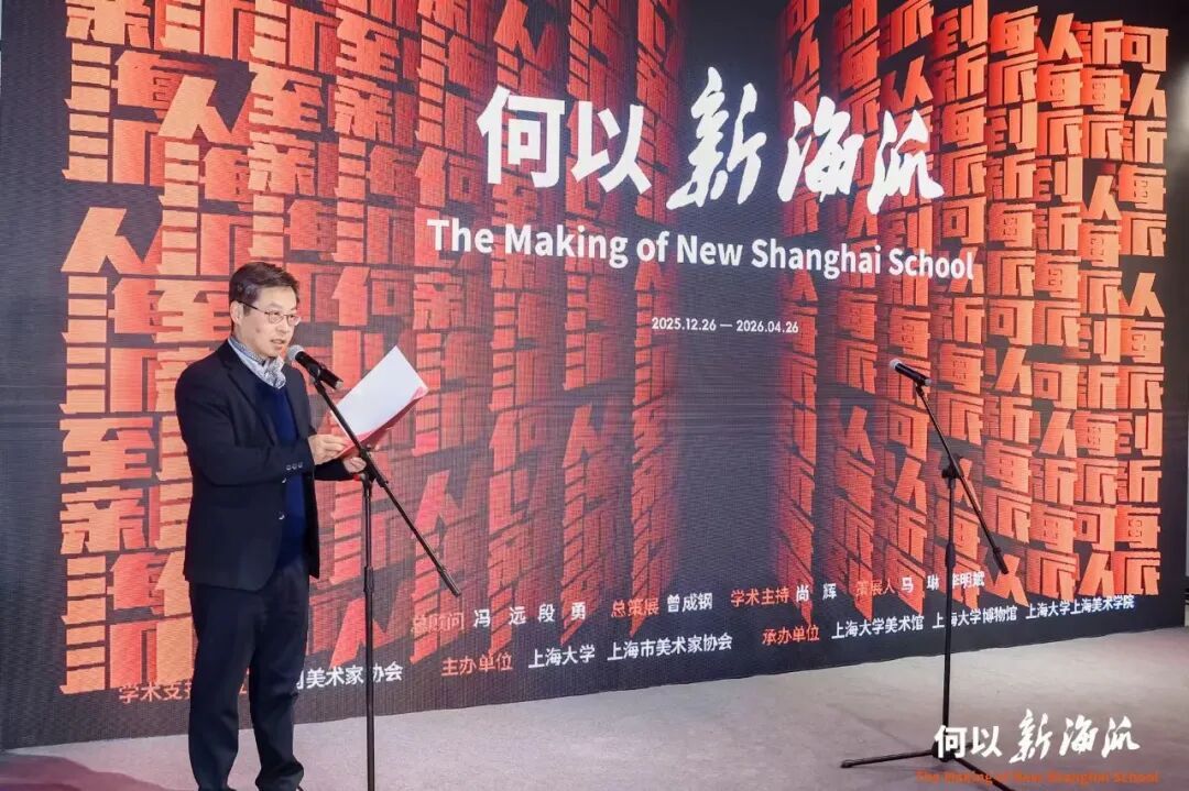 由中国美术家协会学术支持,上海大学与上海市美术家协会共同主办,上海大学美术馆、上海大学博物馆、上海大学上海美术学院共同承办的“何以新海派”大展于12月26日在上海大学开幕,来自海内外150余名艺术家、嘉宾出席。“何以新海派”这一兼具学术深度与时代关切的主题亮相,不仅为城市奉献了一场高规格的艺术展览,也向社会清晰传达了其未来的学术定位与公共使命。开幕式由上海大学博物馆馆长李明斌主持。